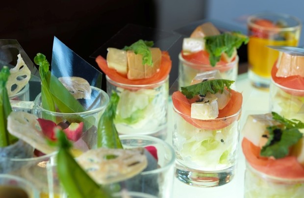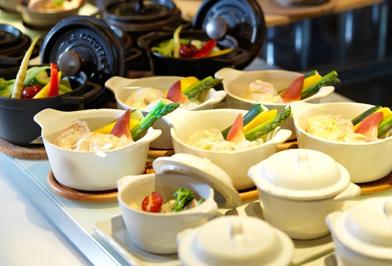 魚介スープや温製野菜のグリル等も蓋をセットし熱々でご提供します。