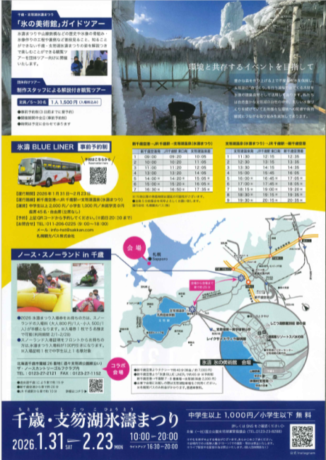 さらに期間中のみ、新千歳空港やJR千歳駅からの有料バス「氷濤 BLUE LINER」が運行されます。