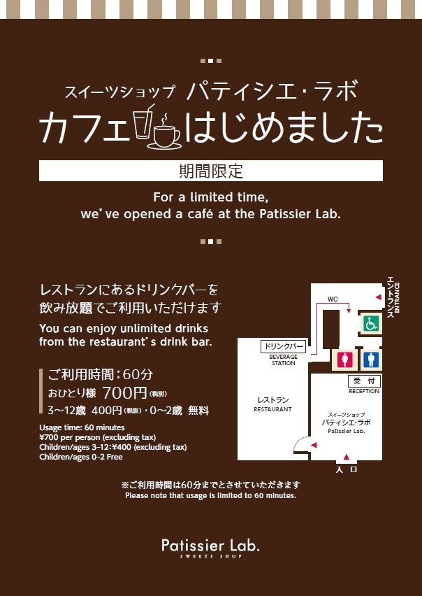 期間限定「パティシエ・ラボ」カフェ営業のお知らせ