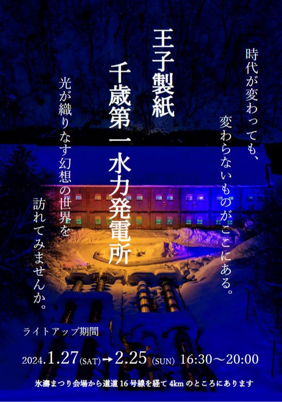 <2/25まで>「王子製紙 千歳第一水力発電所」ライトアップのお知らせ